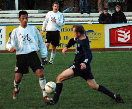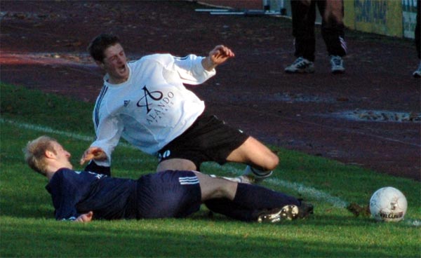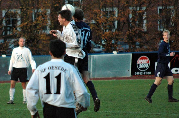 14.11.04: Germania - Oesede 1:1 Nicht nur in der Abwehr wertvoll: Thorsten Seiffert Kampf um jeden Centimeter: Oesedes Kol gegen Wlodek Pikula Seltenes Bild: Pikula gewinnt ein Kopfballduell "Ich bin um 10 Jahre gealtert..." - VfL-Trainer Ammermann nach dem Spiel Fotos © Mario Rauch |